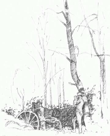 Egy másik képe: a rőzsét cipelő sebesült katona.