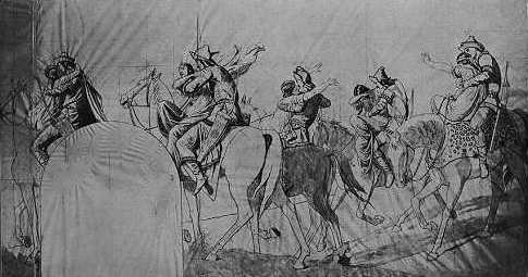 RÉSZLET SZÉKELY BERTALANNAK A VAJDA-HUNYADI CIKLUS ÖTÖDIK KÉPÉHEZ KÉSZÍTETT NAGY KARTÓNJÁBÓL