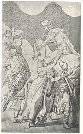 Természetes, hogy az efféle szempontok csak azokat vezérelhetik, a kikben erősen kifejlett a vonalritmus iránti érzék, a melynek kitűnő példáját adta Székely Bertalan a nő-rablás nagy kartonjának csoportjainál. A részletek átdolgozásának jellemzésére itt is egymás szomszédságába állítottuk a nagy és kis kartónokat, a figyelmes szemlélő a mondottak után rájön az elváltoztatások formális okaira.