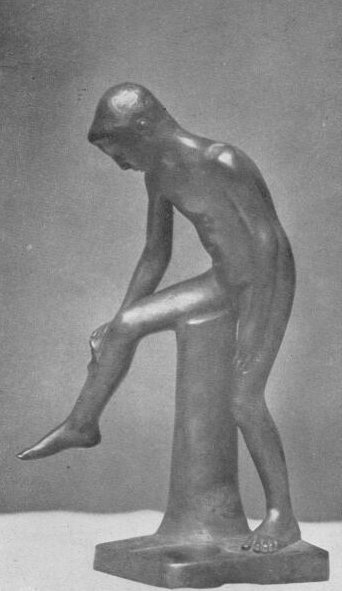 E szobrokon már észrevehető volt olyan törekvés, amely a görögök és a reneszánsz tárházából közvetlen tapasztalatokat merít. Azóta kissé bőven teltek az évek. Közben a művész a "Nyolczak"-nál élvezett vendégjogot s mateljesebben, szuverénebbül érvényesül szobrain az a felfogás, az a stílus, amelyhez az első inspirációt Firenze adta. Bizonyos azonban, hogy az az archaizáló vonás, amely az újabb németeknél már az unalomig menő divatosság szimptomáit öleli fel, nincs meg rajtuk. Szobrai: testek, a maguk logikus felépítettségében. Célzatuk nem az, hogy külön valami önmagáért való vonalat csillogtassanak, hirtelen történő mozgást, nekilendülést vagy belső, lelki hullámzást. Hanem: formákat, amint összekapcsolódnak organikus egésszé. Előadásuk mellőzi a felület számtalan hor-padását, az izmok és erek aprólékosságait is kirajzoló hűséget. A lényeget keresi, lehetőleg tömören és egyszerűsítve, anélkül, hogy bárhol valamely forma az elvont geometrikus sémához járna közel. Lábuk alól nem engedik ki végkép ugyan a naturalista igazság talaját, de a stílus magaslatára igyekeznek.