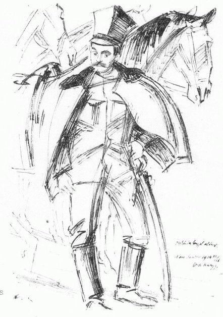 Az északi harctérről a hadisajtószállást levezényelték a déli harctérre, akkor betekintett hozzánk a művész (lovaglónadrág, lábszárvédő - és az elmaradhatatlan esernyő), beszélt igen sok érdekes és nagyon tanulságos dolgot, s azután, s azután, ment le ő is, délre.