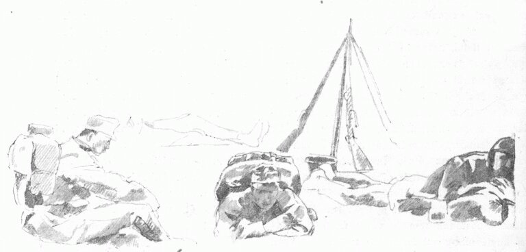 Egy másik képe: a rőzsét cipelő sebesült katona.