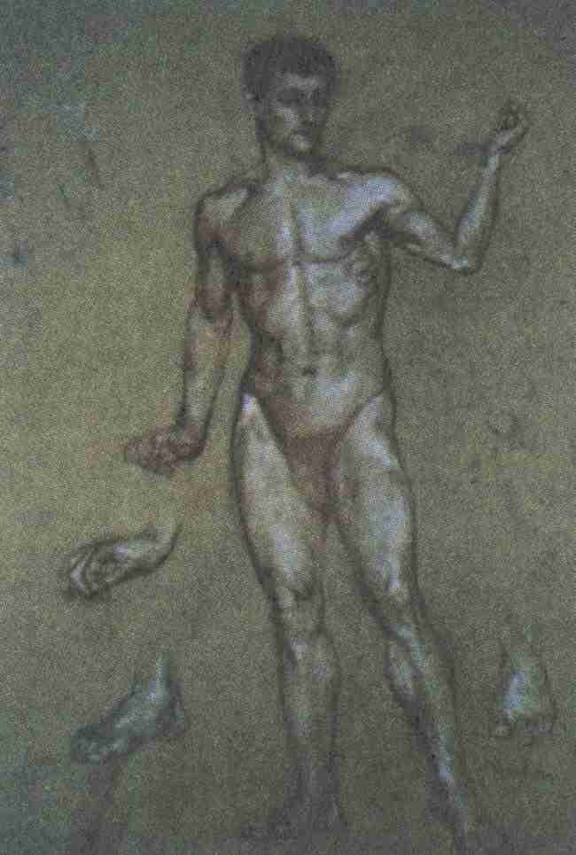 21. Kriesch Aladár: Álló férfiakt kéz- és lábfejtanulmányokkal, 1882/83 körül