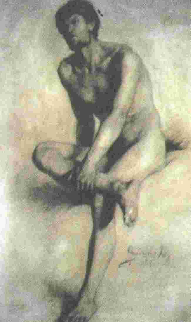 25. Gyárfás Jenő: Férfiakt, 1875 papír, ceruza, fedőfehér, 620 x 440 mm