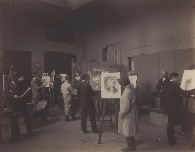 27. Fénykép: Fej tanulmányokat készítő férfiak. In Fényképalbum, 1900.