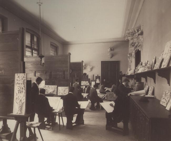 76. Férfiak az ékítményes és iparművészeti osztályban. In Fényképalbum, 1900.