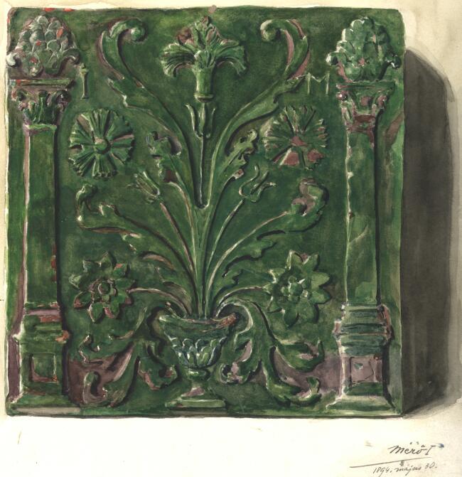 93. Mérő István: Zöldmázas kályhacsempe ábrázolása, 1894