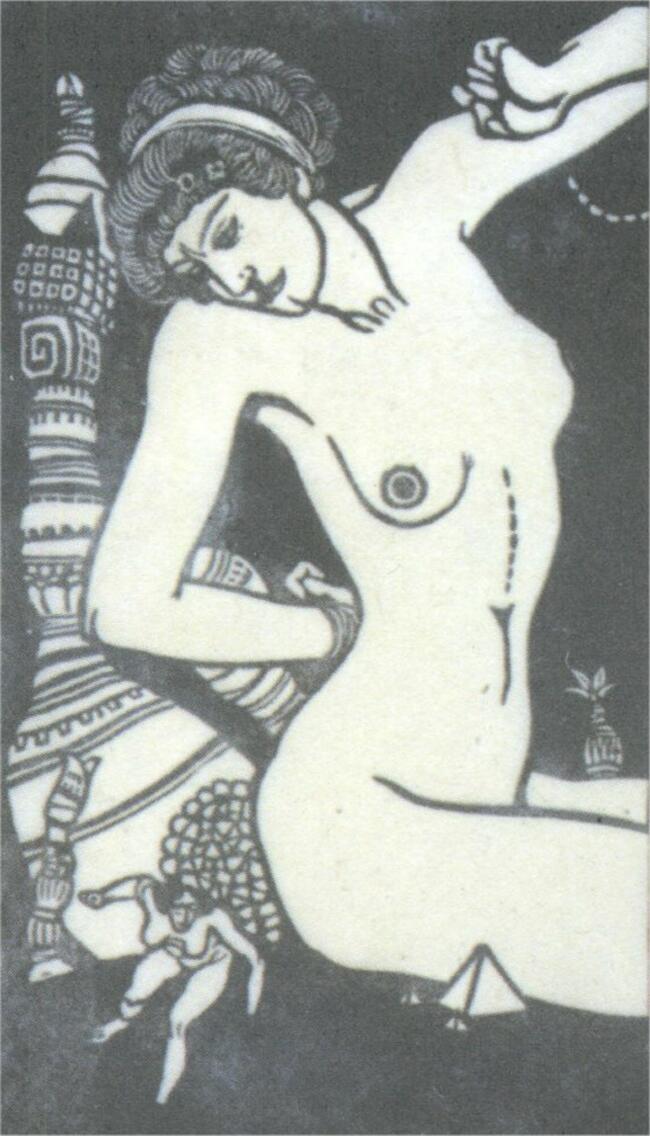 papír, linóleummetszet, 280 x 157/321 x 192 mm J. j. 1.: Tichy Gy. 910; b. 1.: Toilette-hiba; k. 1.: KF Rektori Hivatal körpecsétje