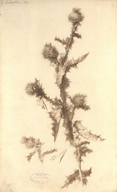84. Taksonyi József [?]: Tanulmány természet után: Növény (bogáncs)-tanulmány, 1887-1891 körül [?] papír, tus, 366 bx 223 mm