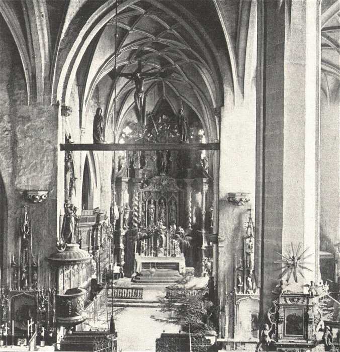 Azt hiszem bízvást hozhatom az utóbbi két okmányt a XIV. század dereka táján épült szentély átalakításával kapcsolatba s így még inkább valószínűvé válik, hogy templomunk a XV. század első felében mai alakjában készen volt s a déli oratóriumon és tornyon kívül ezután már csak templomunk belső fölszerelése foglalkoztatta a város különböző mestereit.