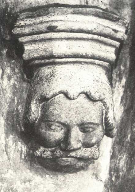A déli hajó diadalíve északon minden átmenet nélkül olvad a szabadon álló pillérbe, déli vége azonban konzolon nyugszik, a melyet egy szakállas férfi domborművű mellképe, nyilván a templom e részén tevékeny mester arcképe díszít, a kinek címerpajzsba foglal s cikkem végén bemutatott jegyével a diadalív zárókövén találkozunk. Egy másik arcképszerű fölfogással készült emberfej, önkényesen a falba illesztve, a templom déli hajójának utolsó szakaszában az ablak fölött látható.