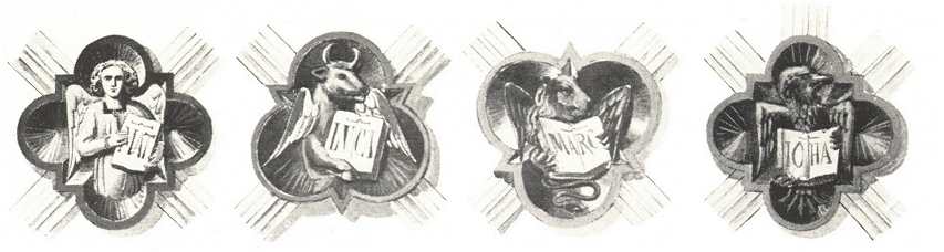 AZ EPERJESI SZENT MIKLÓS-TEMPLOM BOLTOZATI ZÁRÓKÖVEK A NÉGY EVANGÉLISTA JELVÉNYÉVEL, A DÉLI HAJÓ SZENTÉLYÉBEN