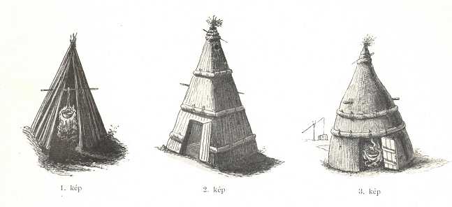 Bemutatjuk még a szintén ázsiai eredetű s velünk nyelvileg is rokon finnek kotáját (1. kép), a mely édes testvére a magyar pásztorkunvhónak.