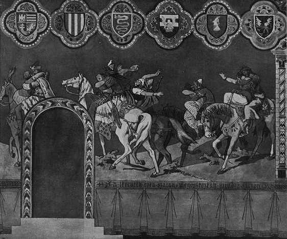 RÉSZLET SZÉKELY BERTALANNAK A VAJDA-HUNYADI CIKLUS ÖTÖDIK KÉPÉHEZ KÉSZÍTETT NAGY KARTÓNJÁBÓL |