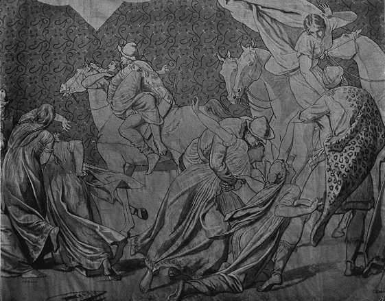 RÉSZLET SZÉKELY BERTALANNAK A VAJDA-HUNYADI CIKLUS ÖTÖDIK KÉPÉHEZ KÉSZÍTETT NAGY KARTÓNJÁBÓL