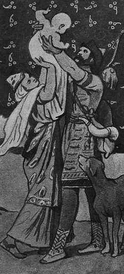A magyar olvasó bizonyára megérti e vázlatos sorokból az okot, a mely ezen atavisztikus hangulatok felé vitte a mestert. Egy egész népfaj hangulatát ragadta meg: magában véve is nagv cselekedet. Egy festőnél azonban ez még nem minden. A művészet géniusza általsétálja a népeket és korokat, sokat magára ölt belőlük, de azért megvan a saját kincse, megvannak a saját tulajdonságai is. Egy kép vagy szobor sokfélét mondhat el, de nemcsak vezércikktémákat. Egy képnek s szobornak megvannak a maga belső témái is, a melyek függetlenek a mű címétől.