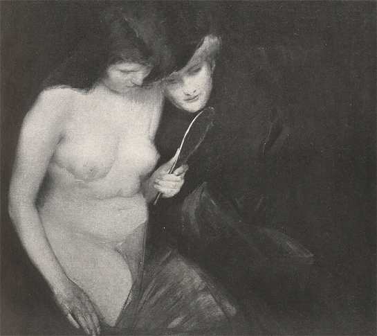 Ha ma egy nemzetközi tárlat angol tájfestményeit nézzük, azonnal szembe fog ötleni az a nagy felfogás-különbség mely e festőket s különösen a skótokat jellemzi. Ezeknél, különösen Stevenson, Paterson, Morley, Cameron, Grosvenor, Harthey, Frew, Hamilton és Spence tájképein valami közös érdekes tulajdonságot vehetünk észre: azt a törekvést, hogy a látott hangulatot mintegy átszellemülve, saját nemzeti jellegüknek megfelelően adják vissza, s ha néha tapétaszerűvé is válnak, még sem követik el a természeten azt az erőszakot, a melyet különösen a bécsi szecesszió híveinél tapasztalunk. Amazok tájfestményeinek megtekintése után ezek képei szinte bántólag hatnak. A laikus szeme észreveszi, hogy a skótok ködösen, a bécsi szecesszió emberei pedig rikítóan festenek. Tovább kell kutatnunk. A mai műkritika a skótok képein felfedezi azt a miszticizmust, azt a spleenes bájt s borongó lelki állapotot, mely már Ossianban, vagy a gael népballadákban, vagy Byron világfájdalmában is megnyilatkozott s a legszorosabb összefüggést mutatja földjük s kedélyviláguk között, míg a bécsi szecesszió képei előtt kénytelen bevallani, hogy inkább a feltűnés viszketegében szenvednek és hatásvadászatból, nem pedig saját anyaföldjük szeretetéből fakadó érzelmeiket fitogtatják. E példa is világosan jelzi, hogy a nagy színeffektusok hajhászása s a szemet ide-oda ráncigáló színfoltok tarkasága megbontja a hangulat egységét, míg viszont a színek nyugodt harmóniája előmozdítja azt.
