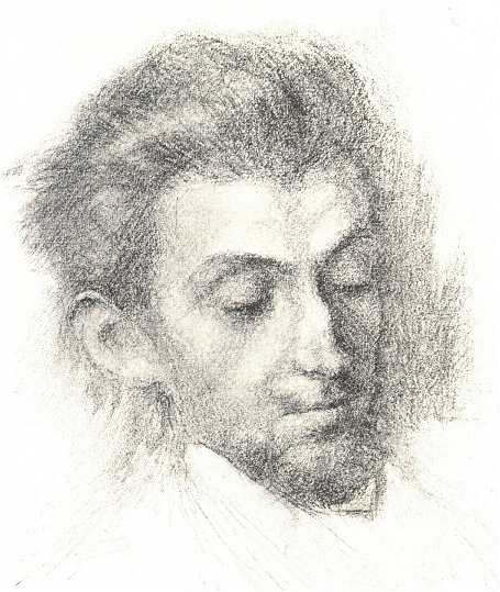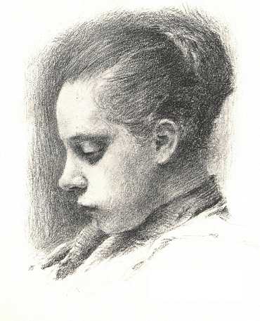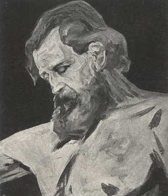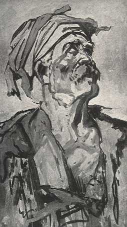 Keletkezésük módjának e lényeges mechanikus külömbsége részben feleletet ad e kérdésekre. Annak az oka, hogy korunk a metszet vonalát hidegnek és nehézkesnek találja eszméi kifejezésére, hogy műízlésének oly keveset tud mondani, e vonal keletkezésének természetében fekszik. Folytonos anyagi akadályokkal küzdve, azokat útjából lassú energiával újra meg újra félretolva jön létre. Azért lett ily nyugodt, büszke és szűkszavú, inkább gondolatvilágunkat, mint érzésünket vagy fantáziánkat érdeklő. A metszőnek takarékoskodnia kellett vonalával, a kéznek mely megteremte, több határozottságra, mint ügyességre, több türelmes erőre, mint improvizáló érzésre volt szüksége. Azért fordult legelsőben is a forma felé, abban is csak a lényegest adta: a fej konstruktív szépségét, az alaknak térben való nagy hatását. A színtől elvonatkozott, színtelennek látta modelljét, mintha szobor után dolgozott volna. Minden szintetikusan van megalkotva, széles nagy tömegekben fölépítve.