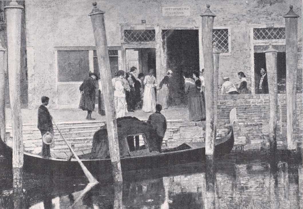 Venezia, a sajátos, egymagában álló város, a XIX. század első felének festői közül keveset lelkesített arra, hogy maga körül széttekintsen s a körülötte látható, csodálatosnál csodálatosabb dolgokat deszkájára vagy vásznára átvarázsolja. És ha valaki mégis ilyen munkára vállalkozott : azt annyi szentimentalizmussal csinálta, hogy csak unalmat keltett minden jobb ízlésű emberben. Venezia holdas éjjelei és szere-nádái, a képes ábrázolásokban színpadi jelenetek voltak, halvány és kendőzött másai a valónak. A mit Hugó Viktor mondat Nadirral: "J'ai tant cherché le beau que j'ai trouvé le laid", elmondhatta magáról a mindent idealizálni akaró veneziai festőművészet. Az örökké vasárnapi díszben pompázó gondolások és popolánák keresetten kecses mozdulataikkal unalmasakká, közönyösekké váltak s legfölebb arra az idegenre hatottak, a ki csak hire után ismerte a szép Veneziát.