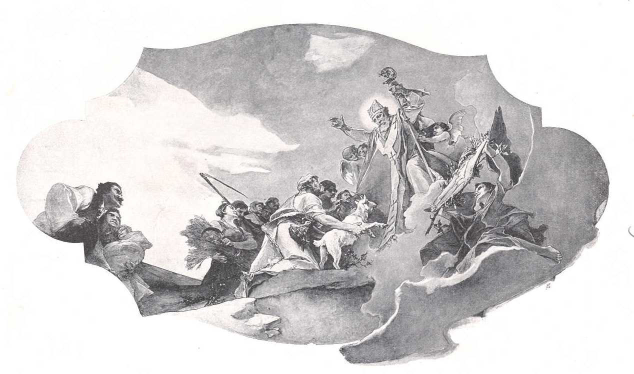 A KECSKEMÉTI NAGYTEMPLOM FRESKÓI SZENT MIKLÓS MEGÁLDJA A PÁSZTOR- ÉS FÖLDMÍVELŐ NÉPET ROSKOVICS IGNÁC FESTMÉNYE