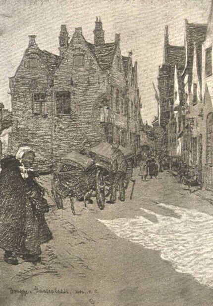 SZÉKELY ANDOR "A Ganseplaats Brüggeben" című művét reprodukáljuk a 305-ik oldalon. Eredetije pasztellrajz.