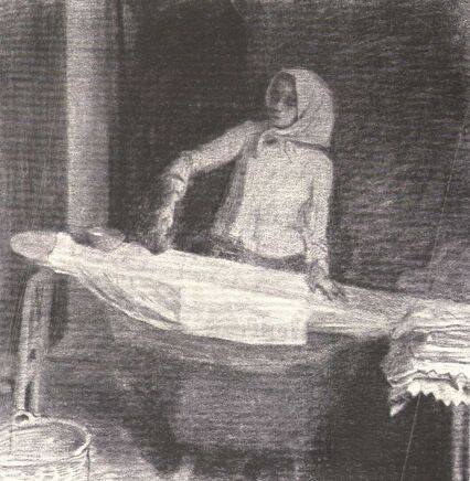 FERENCZY KÁROLY rajzolta a 372-ik oldalon levő "Vasaló leány" című képet.