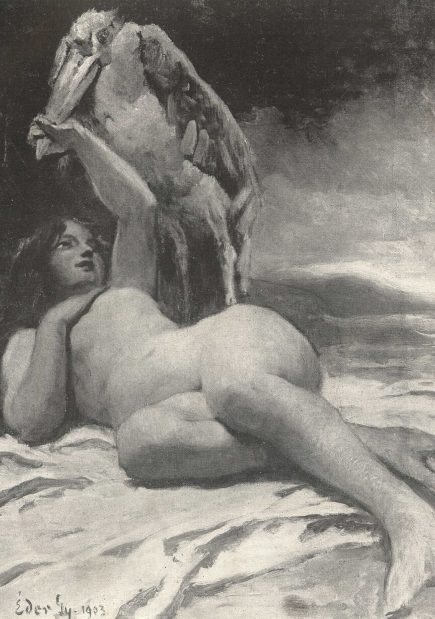 ÉDER GYULA műve a 377-ik oldalon reprodukált "A marabu" című kép. Eredetije olajfestmény.