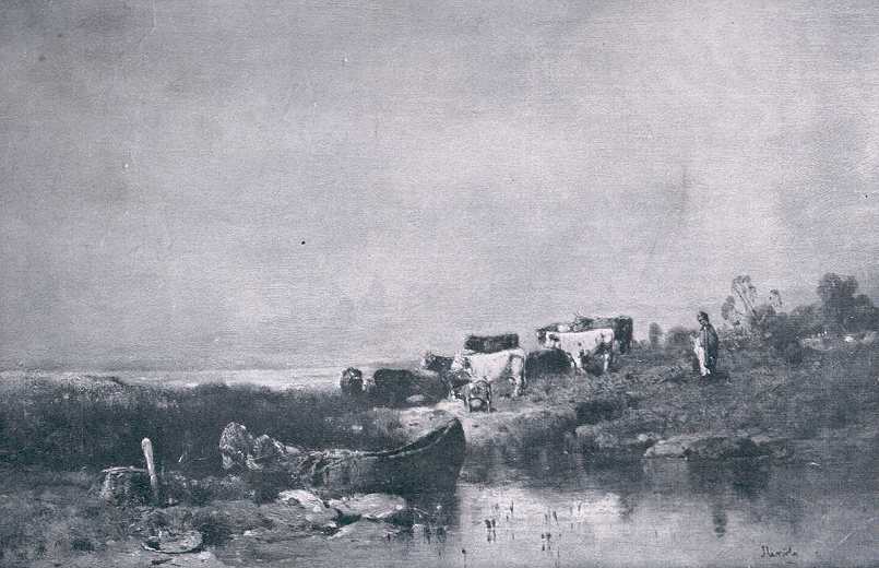 A Markó olaszosan meleg, szivárványos, romantikus színeivel nem bírt ugyan, azok sá-padtabbak, keményebbek voltak az ő vásznán, de meglepő lelkiismeretességgel, apróra követte a mintát s munkáján szembetűnő volt a művészi foglalkozás szeretete.