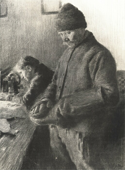 GLATZ OSZKÁR "Reggeli munka" című képét közöljük a 177-ik oldalon. Eredetije szénrajz.