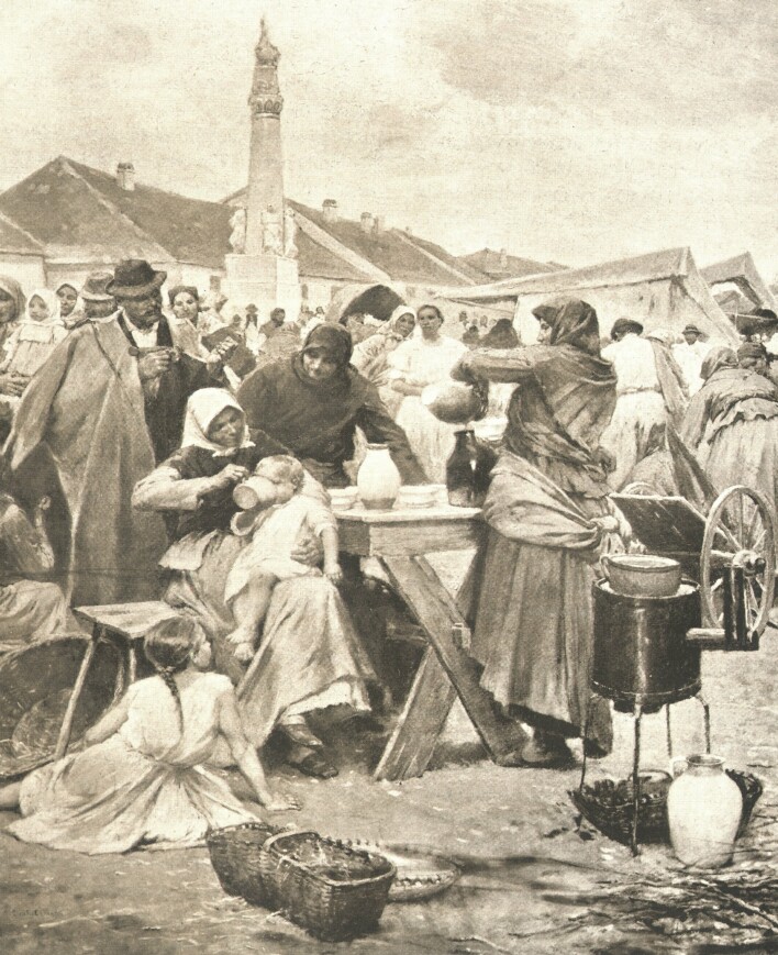 VESZTRÓCZY MANÓ rajzolta a 388-ik oldalon sokszorosított "Csornákon" című képet.