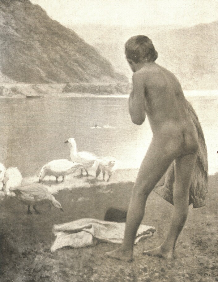 A minket különben alig érdeklő kisebb festők is megérdemlik itt a figyelmet. Nem kész munkáikban, hanem egyszerű természettanulmányaikban leljük itt örömünket. Az első percben nem érti az ember, hogy ugyanazok a festők, a kik e friss és artisztikus stúdiumokat készítették, mint válhatnak hirtlelenül oly szörnyen unalmasakká, mihelyt "befejezett", "kész" képet festenek. Rögtön megérthetjük e szomorú jelenséget, ha eszünkbe jut ez a szó: akadémia. Az akadémia szigorú daccal megkövetelte, hogy a képet "be kell fejezni'", "ki kell dolgozni". Az ilyen "értéktelen, csak magánhasználatra készült stúdiumokkal" pedig nem szabad a világ piacára kiállani. Mennyi szép talentum itta meg a levét ennek a "kidolgozásnak!" A világ persze azóta meggondolta magát s az akadémia minden szép teóriája ellenére is, jobban szereti azokat a friss, üde, közvetlenséggel és szeretettel teljes természettanulmányokat, mint ugyanezen festőknek parádés, kifent, megfésült, "kész" olajfestményeit. Lobmeyr százszámra vásárolta össze ezeket a kiátkozott stádiumokat. S már ezzel is bebizonyította, hogy nemcsak mecénás hanem igazi műértő.