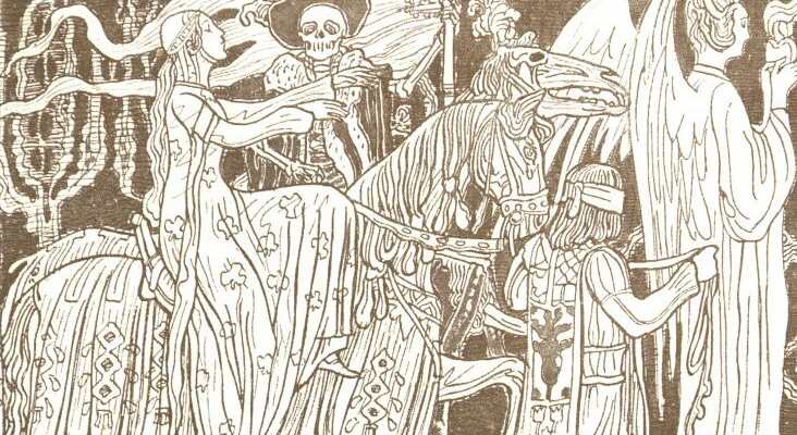Azt mondhatnók, hogy ez nem jelentene nagy szerencsétlenséget a szerzőre nézve, ha műve egyébként tele van rajz-szépségekkel. Ne törődjünk tehát azzal, hogy e képen egy másodrangú elem, a szimbolikus jelentmény, nem beszél világosan. Vegyük egyszerűen szép rajznak s becsüljük fel ebbéli értéke szerint. Hisz tudjuk, mily sok gyönyörű emberi vonást tükröz az igazi művészi rajz magában is.