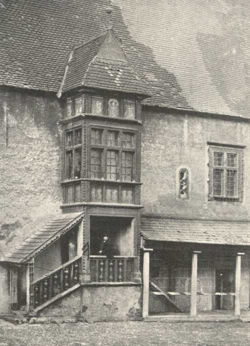Ha a városháza tornyos erkélyétől eltekintünk, az épület földszinti helyiségeiben csúcsíves ízlésű részleteken kívül, egyebet nem találunk. Valószínű, hogy az újabb korban átalakított földszinti ablakok a XVI. század elején szintén csúcsíves stílben készültek s számadásainkban is alighanem ilyen ablakokat kell értenünk a Sándor mesternél megrendelt fenestrae praecipuae kifejezés alatt, Elek mesternek fenestrae italicales néven említett ablakaival szemben. Mint erről már szólottam, a földszinti átjáró két nyílásának kőből faragott kerete késői csúcsíves ízlésű s pálcákkal tagozott bélletből s legalyazott ágak mintájára faragott szamárhát alakú ívből áll, amelynek szárai egymást metszik. E kapukeretek közül az északit a restaurálás alkalmával fejtették ki a reá borított vakolat alól. Ugyanekkor s ugyanígy találtak rá a földszint délnyugati szobájának ajtókeretére, melyet képben is bemutatok s amelynek kései jellegű csúcsíves tagozása egyszerűbb, de igen előkelő hatású. Nagyon valószínű, hogy ez az ajtókeret Sándor mester műve, akit a városháza további kőfaragó-munkálataiban Elek mester követ. Ez az emeleti ablakkeretekkel kezdi itt meg működését s bár a számadások e körülményt nem részletezik, az ablakok és a többi renaissance-részletek stíljének azonosságából szinte önként következik, hogy neki kell tulajdonítanunk a tornyos erkélyt s a városháza négy renaissance-stilű ajtókeretét is.