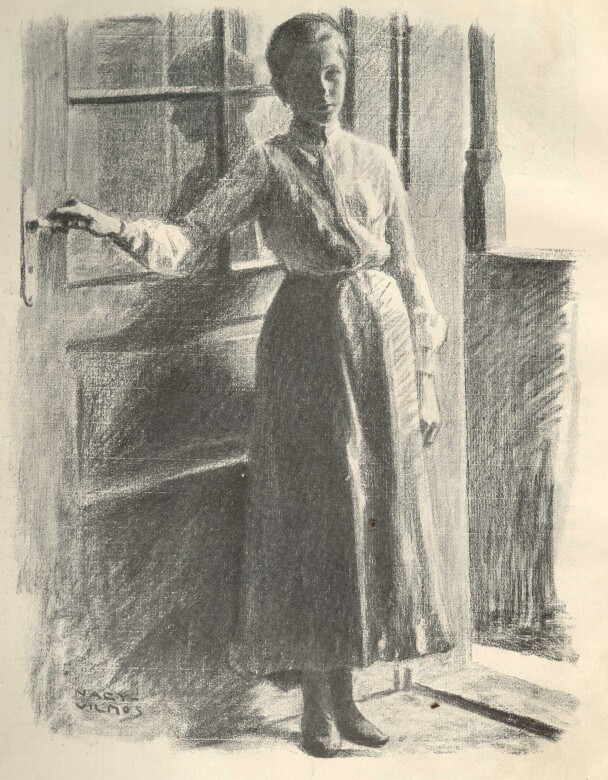 RÁTH ANNA rajzolta a 9 ik oldalon reprodukált "Otthon" című képet. Eredetije szénrajz.