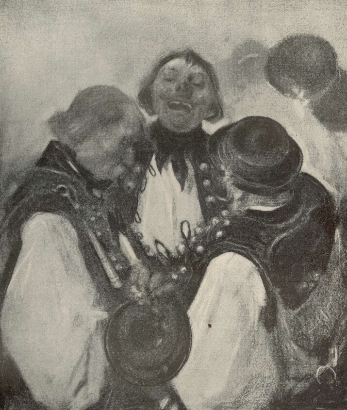 RUDNAY GYULA rajzolta a "Hárman valának együtt" és "Kis halott" című képeket (5. és 10. oldal). Az elsőnek eredetije szénrajz, a másodiké krétarajz.