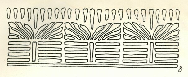 A kisebb motívumokban, minők a szövetek hajtékai stb., egyrészről ugyanazon változatosság, másrészről ugyanazon meggondolt elrendezés észlelhető, amit a nagyobb tömegekben és azok felépítésében tapasztalhatunk. A formák rajza, mint már jeleztük is, sehol-sem részletező és visszamegy a középkori művészetben kifejlesztett típusokra.