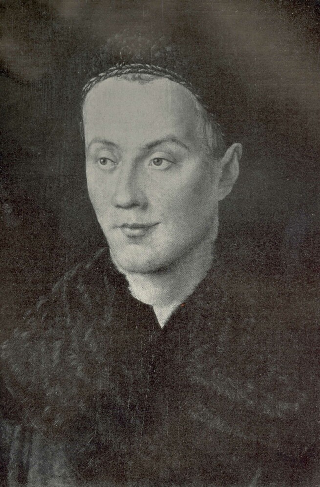 Dürer Albert fejlődésében igen fontos fejezetet töltenek be a Miksa császár számára készített grafikai alkotások. Az óriási fametszetek: a "Diadalkapu", az allegorikus "Diadalmenet" és a müncheni "Diurnale" lapjait díszítő tollrajzok az uralkodó megrendelése folytán kifejtett tevékenység legnagyobb eredményei. E művek a XVI, század második évtizedének közepén annyira igénybe vették a mester erejét, hogy kevés idő jutott mellettük az ecset számára. A művész ezen korszakából ránk maradt festmények kisebb jelentőségűek. A húszas évek képmásaival szemben erőtlenül hatnak. A karakter szempontjából jelentős formák kidomborítása helyett inkább az aggodalmasságig finom megmunkálás jellemzi őket. Ilyen a 699. szám alatt kiállított képmás is, melyet Thausing valamely udvari tudós képének tartott7. Meggyőződésünk szerint azonban az ábrázolt személye sokkal közelebb állhatott a mesterhez, amennyiben világosan felfedezhetők benne András nevű öcscsének vonásai. A mellig ábrázolt ember kissé balra fordul. Prémgalléros fekete köpenyt visel és szőke haját hálóból font sisak borítja. A kép háttere vörös. A beteges megjelenésű férfi arca beesett, álla hegyes és ha a képet figyelmesen megnézzük, felfedezzük rajta különös ismertető jelét is, néhány szőrszálat az álla hegyén jobbfelől.