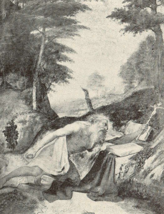 Budapesten magántulajdonban van Andrea Previtalinak egy kis önsanyargató Jeromosa a művész azon korszakából, amidőn Lottót fogadta előképül.16 Érdekes és tanulságos a két egykorú szerzőnek ugyanazt a tárgyat mutató műveit összehasonlítani, hogy megértsük, mit akart s mit ért el az egyik is, a másik is.