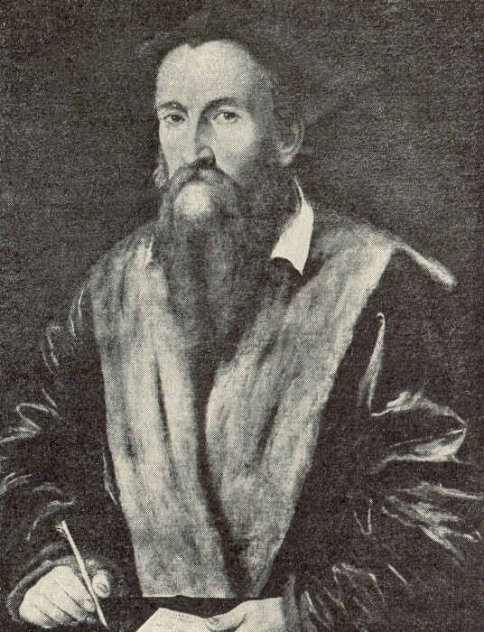 A katalógusnak az a meghatározása, hogy ez a festmény a művész önarcképe, helyreigazításra szorul. Egyetlen egy renaissance-művészről sem ismeretes egy ilyfajta ábrázolás. Szakálla nagy, orcája sápadt, szeme mélyen fekvő, barett a fején: így ül az ábrázolt az asztal mellett, előtte tintatartó, kezében toll, épp írásközben látjuk őt. Főpapot és literátust szokás így ábrázolni, nem művészt. Az írás momentuma jellemző. Al mio amore Jeronimo Romani pictore Bresciano, - - e sorokat írta a papirosra. Az ábrázolt nyilván úgy kívánta magát a képen látni, amint épp kedves barátjának, - - ez esetben Romanino festőnek -ír. Az amore rövidítés bizonyára amorevole-t akar jelenteni, bár az olasz nyelvben a tu sei mio amore szólásforma férfiak közt sincs kizárva. Csak téves magyarázás foghatná fel ezt a felírást úgy, hogy a festő önarcképét akarta volna vele kedvesének ajánlani.
