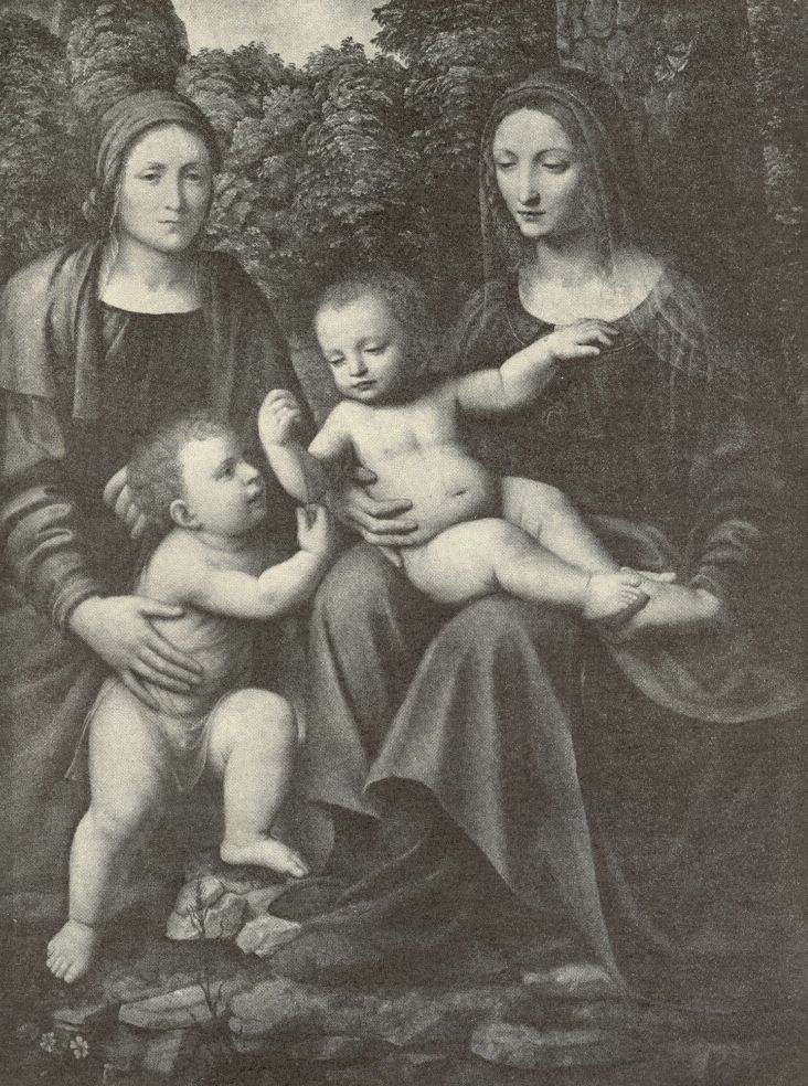 Csakugyan, a mester középső korszakából, 1508—1520. eredő képeket, amelyeken a fejek nagyobb plasztikai hatását kereső mintázásában a leonardesco impulzusokat feléledve és utánérezve látjuk, csaknem mindmáig magának Leonardónak tulajdonították. Nevezetesen a jelesebbeket: Jézust az írástudók közt, a londoni National Galleryben, Mártát és Máriát, amelyet eddig Hiúság és Szerénység néven ösmertek a Sciarra-palotában, most Parisban, Rothschild Ödön báró gyűjteményében és a milánói Ambrosianában levő nagy szent családot.