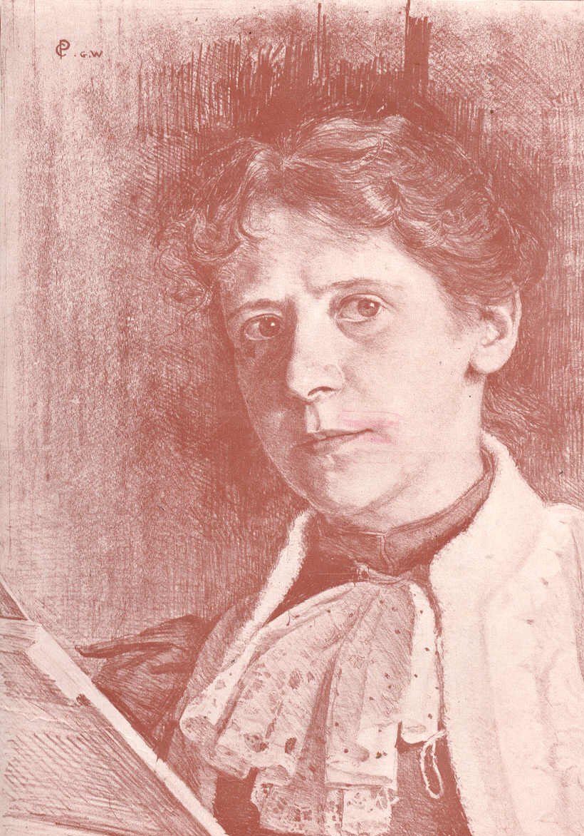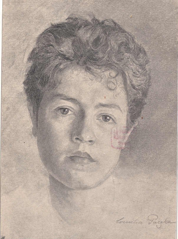 Most pedig mindenekelőtt az arcképeire kell rátérnünk. Mesésen sikerült neki fivérének, dr. Wagner Frigyesnek 1900-ban készült és szélesen odavetett arcképvázlata, mely a fej tartalmát teljesen kimeríti. Szép sikert arattak a berlini kiállításokon ifjú sógornőjének, Margitnak életnagyságú arcképe, az ő szeretetreméltón sensitiv arcvonásaival és dús. de rövidre nyírott és amellett érdekesen fehéres hajával. Míg Jászai Mari arcképében, mely felfogásban nagyon is emlékeztet az urának fönnebb említett Jászai arcképére, mint utánérzésben, nem tudok zavartalan gyönyörűséget találni, annál jobban kielégített Kammererné kiválóan szép képmása.