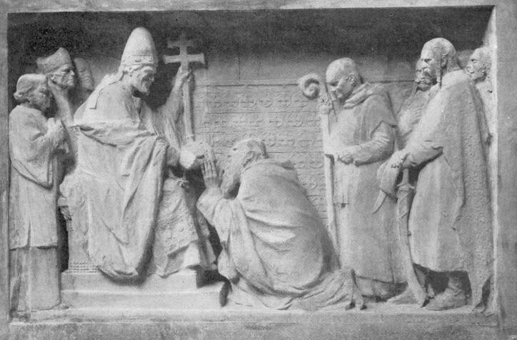 II. SZILVESZTER PÁPA ÁTADJA ASZTRIKNAK A KORONÁT DAMKÓ JÓZSEF DOMBORMŰVE A MŰCSARNOK TÉLI TÁRLATÁN AZ IPOLYI-DÍJ NYERTESE