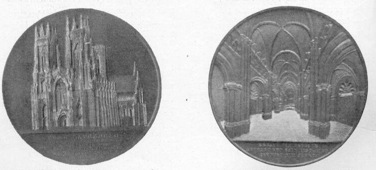 Másik európai hírű magyar művésze volt az éremnek Wiener Jakab. Két testvére, Lipót és Károly is ezt a művészetet űzte s a három Wiener, mint egy zárt dinasztia, évtizedeken át domináló szerepet játszott Belgium s egy kissé Franciaország éremszobrászatában is. Legtermékenyebb tehetség hármuk között Jakab volt. Az ő művészi sajátosságait nagyszabású, csaknem minden irányban kimerítő gyűjteményben sikerült bemutatnia az Éremkedvelők Egyesületének. Wiener Jakab specialistája volt az építészeti éremnek. 1850— 1865-ben egy negyvenegy éremre terjedő sorozatban megörökítette Európa legnevezetesebb egyházi és világi épületeinek képét. Az érem színére az épület homlokzatát véste rá, a visszájára az épület belsejének egy-egy távlatba állított részét, vagy az épület alaprajzát.. A legnehezebb perspektívai feladatokkal kellett megbirkóznia: román és gót templomok hosszúhajós testét beleállítania az érem körbe foglalt terébe úgy, hogy a megrövidült épület tagjai is kellőképpen érvényesüljenek, a főhomlokzat ormos-tornyos jelentősége pedig egész értékében hangsúlyoztassék; a gót templomtornyok merész arányainak megérzékí-tésére új arányokat kellett találnia, nehogy a kép szétessék, a templom-test s a tornyok összhangja megbomoljon s az eredetinek megkapó arányai eltorzuljanak. És Wiener Jakab nem érte be impressziók visszaadásával, hanem a legpontosabb részletezésre törekedett. A vésés technikája gyakran túlzásra csábítja ebben. Az apró részletek egymásra halmozásával olykor művészietlenné lesz. A kölni székesegyházat ábrázoló érme a finomságkeresésnek szinte szélsőségét mutatja már. Perspektívái tudása legimponálóbb a gót templom-intérieur-őket ábrázoló érmein. A keresztboltos hajók egész homályba vesző, visszhangos és hideget fújó mélységét szinte egyazon síkon tudja megérzékíteni néhány laposan, kezelt finom formával, sokszor csak vonallal.