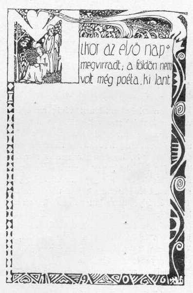Mindezek megszívlelése után pedig tisztelettel kérem az olvasót, nézegesse végig a Kozma Lajos művészetének termését. Nézze végig annak a tudásával, hogy a vonalak finom játékához ezúttal nem jöhetett segítőtársul a színek összehangolt harmóniája. Gyönyörködjék bennük és vizsgálja őket abban az irányban, azzal a szeretettel, mint amilyen szeretettel kísérte végig útjukon e sorok szerény rovogatója. Én legalább meggyőződésből mondom, hogy az egyik legkiválóbb magyar talentum tette meg az első lépését'...