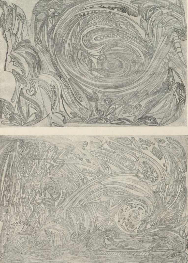 Éppoly feltűnő, hogy ezeken a rajzokon a szimmetriának sehol nyoma sincs. Megszoktuk, hogy a szimmetriának sokszoros szerep jut a természeti tárgyakat nem utánzó ornamentikában. Talán egyenest szomatikus okokra vezethető vissza ez a jelenség s ha ez áll, úgy ezeknek a sajátos idegállapotban készült rajzoknak dupla érdekességet kölcsönöz az a körülmény, hogy aszimetrikusak.