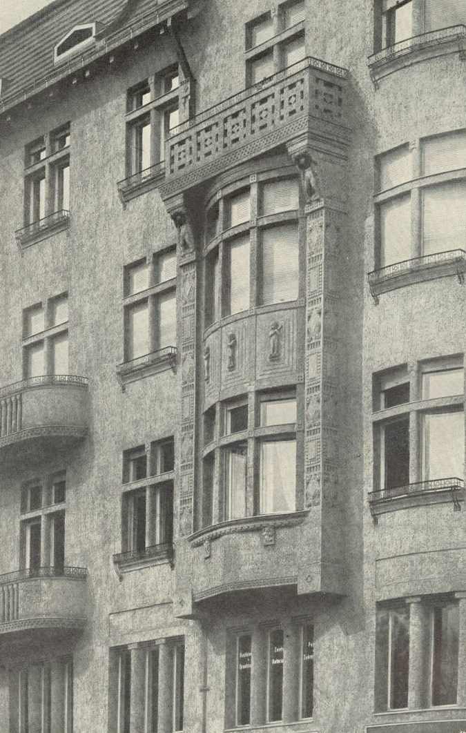 A bérháznak is megvannak Berlinben a maga speciális követelményei. Annál inkább, mivelhogy csupa vállalkozók, ház-spekulánsok kezében van az építkezés, akik minden négyzetméternyi területet ki akarnak zsákmányolni. Az építőművész, akivel a tervet megrajzoltatják, csupa aprólékosan kötött feladathoz van láncolva. A lakónak pedig különös igényei vannak. Berlinben például alig van lakás, még olcsó is, csukott vagy nyitott loggia nélkül. A berlininek okvetlenül erkély kell, hogy vacsorázhasson rajta és felvirágozhassa. Viszont a rendőrség meghatározza, hogy a háznak csak egyharmadrészén lehet erkély és loggia és természetesen azt is, hogy milyen széles járdának kell szabadon maradnia, így aztán az erkélytoldalék úgy lóg a régebbi berlini házakon, mint egy légben lebegő külön épület, ellensége minden nyugodt művészi hatásnak Ez az erkélyprobléma talán egyik legnagyobb kérdése a berlini bérház-építkezésnek ; a feladat az, hogy a sok erkélyt minél szervesebben belehangolják az épület tömeg-ritmusába, hogy ne a levegőben lógjanak, hogy ne szaggassák meg az épület homlokát nyugtalan redőkkel. De van ilyen szükségparancsolta probléma még számtalan, melynek megoldását egy bontakozó stilus nagy perspektíváitól és mindig új feladatoktól lelkesített művészgárda vállalja.