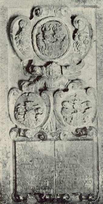 A pufók képű angyalalak, amely a két alsó címert tartja, szintén sok rokon vonást mutat az erkélyen levő kerub-fejekkel, valamint azokkal is, amelyek a besztercebányai várbeli Szent-Kereszt-templom keresztelőmedencéjét díszítik.