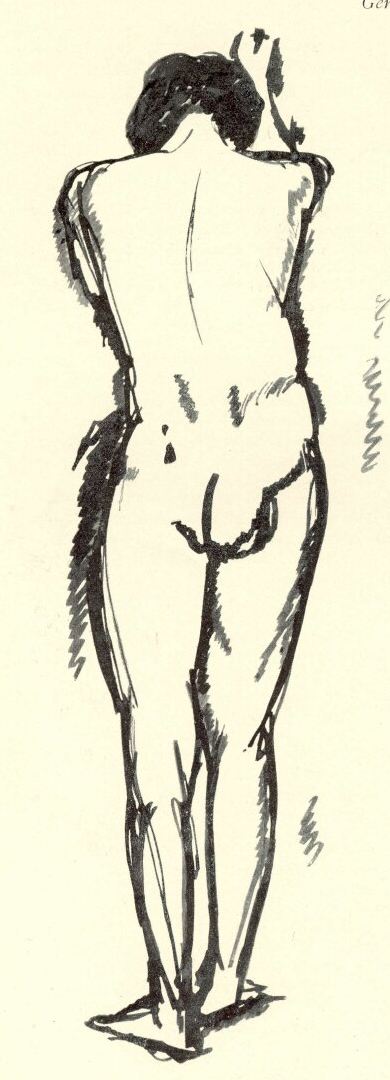 Ugyancsak az Uffizi tulajdonát képező egy másik rajzán (v. 369, n. 1952F) az egyik női alak a Michelangelo " Apolló"-jának pose-ába helyezkedik. Mezítelen testét a nézővel szemben láttatja, izmos nyakát erélyesen jobbra fordítja, tekintetét földre szegzi: mint az "Apolló", bal karjával, ehhez hasonlóan, mellén keresztül jobb felé tesz mozdulatot, csak jobbját tartja eltérő módon.