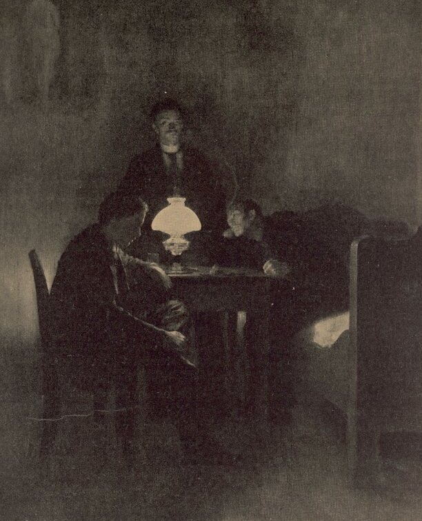 Mindenesetre Paris e hatása keltette benne a vágyat: megalakítani festék, ecset, vászon segítségével azt a képet, amit e-hatás benne keltegetett. így keletkezett 1893-ban legelső olajfestménye: "Bohémek karácsonyestéje idegenben".