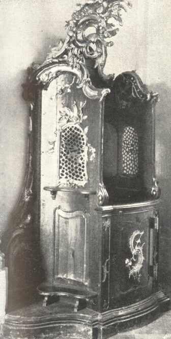 A szentély két felén a kupolapilléreken függ a remekbe faragott szószék és az orgona háza. Az előbbit alján Krisztus siratását, születését s tizenkétéves korában a templomban, ajtaján feltámadását ábrázoló aranyozott domborművek díszítik, mennyezetén két angyal lebeg a tízparancsolat táblájával kezében. Az orgonaház három domborműve Szent Ceciliát ábrázolja két zenélő angyal között. A kupola bejárat felőli két pillérén felhős gyámköveken két nem kevésbbé művészies stucco-szobor-csoportozat van: Nepomuki Szent János, amint a királynét gyóntatja és az alamizsnát osztogató Szent Jánost. A kupola csarnokához fűzött kát oldalkápolna oltárait angyalos stucco-keretbe foglalt figyelemreméltó olajfestmények díszítik. Jobbfelől páduai Szent Antal, balfelől assziszi Szent Ferenc képe. Mind a kettő alatt egy-egy rokokó cikornyás üvegkoporsó áll az oltáron. Az egyikben Szent Deodát mártir csontváza fekszik aranycsipkés ruhában, negédes pózban ; a másikban három üveges dobozban szent ereklyék láthatók. A szentéllyel szemben levő falon a félemeleti oratórium nyílását aranyozott, cikornyás keretbe foglalt hármas ablak zárja el. Az oratórium bejáratával szemben gazdagon faragott és cikor-nyáiban szintén aranyozott gyóntatószék áll. A kápolna oldalfalai, mint ezek plasztikus stucco-díszítése is, fehérek; a boltozatától azonban szinte végesvégig játszi könnyedséggel odavetett, leheletszerű finomsággal színezett falképek díszítik, amelyek szelíd harmóniájából csak itt-ott csendül ki egy-egy erősebb hatású színfolt. Ezeknek a falképeknek a festője nem kisebb mester volt, mint a bécsi Maulpertsch (1724—1796), akinek magyarországi működésével nálunk már többen foglalkoztak.1 Legnagyobb méretű s a sümegi plébánia-templomot, az egri líceum kápolnájának mennyezetét, a székesfehérvári karmelitáknak ma a papnevelővel kapcsolatos templomát, a győri és a szombathelyi székesegyházak boltozatát díszítő falképei mellett a bogoszlói kápolna mennyezetképei kisebb arányúak, de Maulpertschnek távolról sem utolsó munkái, sőt élete virágjában és java erejében tárják elénk a mestert, aki közvetve Tiepolo tanítványa, helyesebben követője volt s aki itt 1763-ban dolgozott.